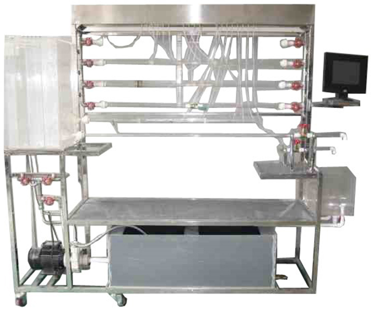 移動(dòng)式不銹鋼實(shí)驗(yàn)臺(tái)、儲(chǔ)水箱;雷諾測(cè)試管;伯努利測(cè)試管;沿程阻力系數(shù)測(cè)試管;突擴(kuò)、突縮測(cè)試管;閥門局部阻力系數(shù)測(cè)試管;孔板流量計(jì)測(cè)試管;文丘里流量計(jì)測(cè)試管;和皮托管測(cè)試管;測(cè)壓板直接顯示總水頭線和測(cè)壓管水頭線;壓力傳感器24套、流量傳感器4套、溫度傳感器1套、觸摸屏、測(cè)壓板。