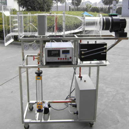 循環(huán)防腐水泵,轉(zhuǎn)子流量計,翅片管式換熱器,風洞實驗段,離心式風機,自動調(diào)節(jié)風門,笛形管及差壓測風速裝置,加熱由固體調(diào)壓模塊無級調(diào)節(jié),控制測試儀表箱,不銹鋼加熱水箱,巡檢儀顯示溫度、水和風的阻力及風速,不銹鋼臺架及控制屏。