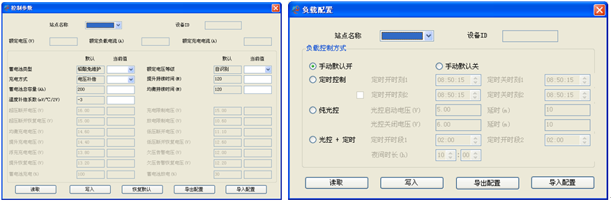 控制參數(shù)界面 負載配置界面