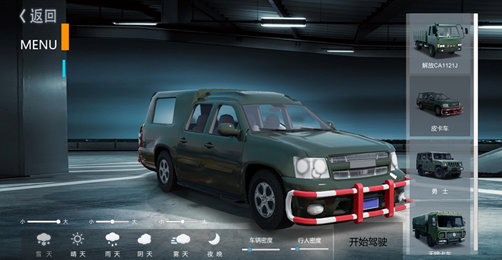 7.1、仿真車模型:10 種典型虛擬車輛模型:東風(fēng)猛士、北汽勇士、 EQ1118、EQ1121、 EQ2102、SX2150、SX2190、豪濼 ZZ2197、東風(fēng)天錦、大客車等,并可根據(jù)需要拓展、定制個 性化車輛模型。