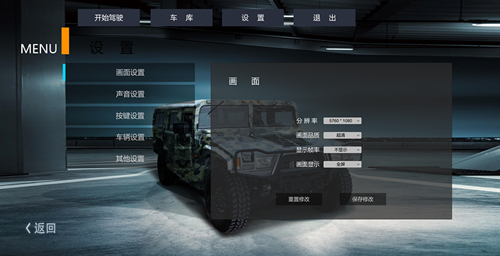 7.2、汽車設(shè)置界面:調(diào)整車輛各項動力學(xué)參數(shù)、車輛后視鏡及視角調(diào)整。