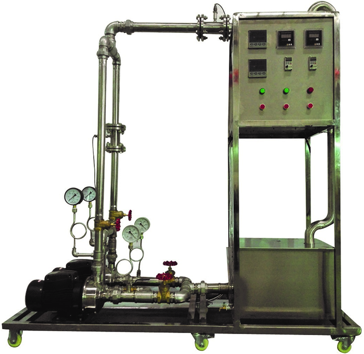 單相矢量變頻器,規(guī)格:(0-50)Hz。 指針式壓力表:表盤直徑Φ100mm 測量范圍0-0.6MPa,精度1.5級。 指針式真空表:表盤直徑Φ100mm 測量范圍-0.1-0MPa,精度1.5級。 功率變送器、智能功率數(shù)字顯示儀。 光電傳感器:數(shù)顯,測量范圍0~2999rpm,精度1rpm,轉(zhuǎn)速檢測機構(gòu)。 宇電AI702M溫度數(shù)字顯示儀。 宇電AI702M流量數(shù)字顯示儀。 DN40渦輪流量計:1~20m3/h,4-20mA遠傳輸出,流量檢測機構(gòu)。 不銹鋼離心泵:功率750W,最大流量7.2m3/h;2臺。 水箱:304不銹鋼材質(zhì),容積100L,帶貯水排空底閥,管路循環(huán)回水與泵吸入口間隔板設(shè)計。 管路:304衛(wèi)生級不銹鋼材質(zhì),采用不銹鋼快裝活接與管路連接,總出口閘閥;管道法蘭連接渦輪流量計。 電器:接觸器、開關(guān)、漏電保護空氣開關(guān)。 304不銹鋼儀表柜:測控、電器設(shè)備在實驗架上。 304不銹鋼材質(zhì)框架1800*600*1900mm(長×寬×高),帶腳輪及禁錮腳。 |