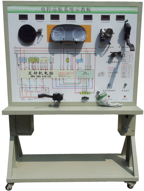 操縱油門踏板位置傳感器可實(shí)現(xiàn)節(jié)氣門開(kāi)度的調(diào),可真實(shí)展示電子節(jié)氣門的工作原理和工作過(guò)程;操縱巡航控制開(kāi)關(guān)和車速信號(hào),設(shè)定巡航狀態(tài),引擎控制單元可對(duì)節(jié)氣門開(kāi)度進(jìn)行調(diào)節(jié),真實(shí)演示汽車電子巡航系統(tǒng)的工作過(guò)程和工作原理。